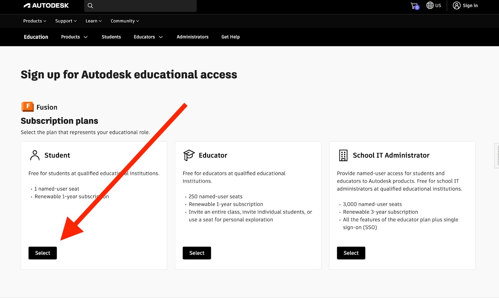 These instructions show eligible students how to register for and Autodesk for Education account and install Fusion.
