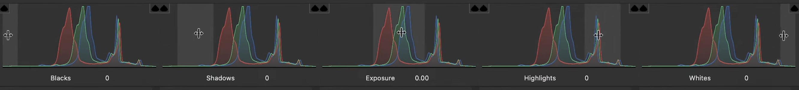 - Basic tonality (Exposure, Highlights/Shadows, Whites/Blacks)